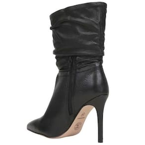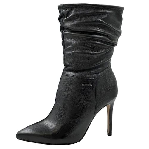 A bota perfeita para quem deseja unir elegância, ousadia e personalidade em um único calçado. Com um design marcante, essa peça valoriza o visual feminino com seu salto alto e fino de 10 cm, que alonga a silhueta e confere presença em qualquer ocasião. O cano curto com acabamento enrugado adiciona charme e movimento ao look, criando uma estética moderna e cheia de estilo. O bico fino reforça a sofisticação da proposta, enquanto o interior com forro têxtil proporciona aconchego e suavidade ao toque. Seu sistema de fechamento lateral, discreto e funcional, facilita o calce sem interferir na elegância do modelo. A assinatura metalizada da marca aplicada na lateral traz um toque de exclusividade. Ideal para mulheres que gostam de se destacar, essa bota combina com vestidos ajustados, saias de couro ou calças skinny, criando composições poderosas para eventos noturnos, encontros especiais ou até mesmo para dar um toque fashion a produções urbanas do dia a dia. Um calçado que traduz confiança e sofisticação em cada passo.
