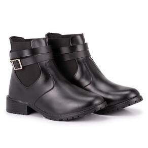 Bota Feminina Salto Montaria 702 Coturno Casual Com Fivela - 34 - Preto