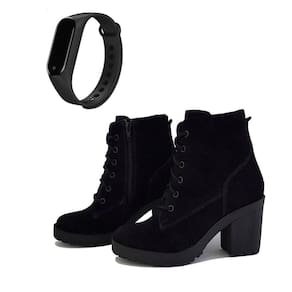 Bota feminina Tratorada Preta Plataforma Blogueira com relógio