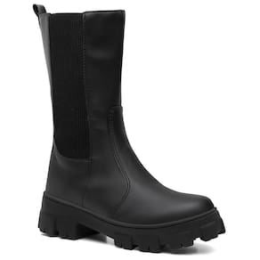 Bota Feminina Tratorada Salto Baixo Cano Médio Chelsea - 34 - Preto