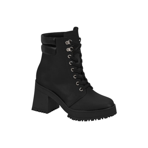 Bota Feminina Vizzano Coturno Tratorada Salto Médio Bloco Calce Fácil - 3091.102 - Lançamento - Preto - 37