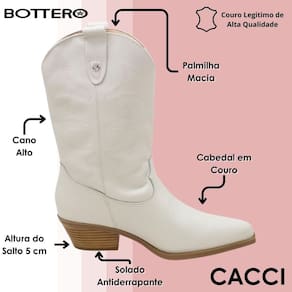 A Bota Country Bottero é mais do que um simples calçado é um estilo de vida. É pra quem gosta de marcar presença, caminhar com confiança e se sentir bem em cada passo. Aposte nesse modelo e leve o charme do country com você, onde quer que vá.
