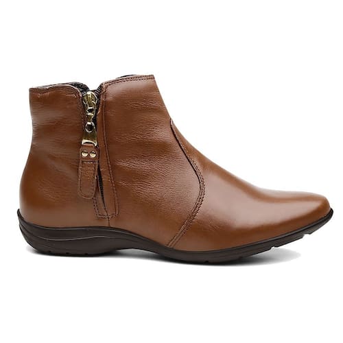 Bota Flat em Couro Feminino Rasteira Básico Zíper Resistente Confortável - 34 - Marrom