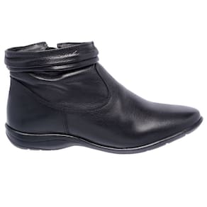 CARACTERÍSTICAS - Material Externo: Couro - Material Interno: Tecido espumado - Palmilha Interna: Material macio, próprio para absorção de impacto - Solado: Borracha leve, com alta aderência e abrasão - Fechamento: Zíper lateral interno - Detalhe: Couro e metal no zíper externo