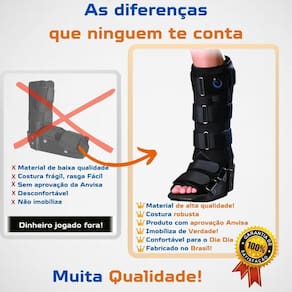 Benefícios: - Indicado para fraturas estáveis, na ausência de deformidades graves. - Luxações, entorses e lesões crônicas do tornozelo. - Prevenção e tratamento das deformidades geradas pela artrite reumatóide. - Produto possui barbatanas metálicas resistentes e leves que fornecem imobilização e possui solado antiderrapante em formato confortável. - Bilateral Qual tamanho comprar Utilize seu tamanho de calçado como referência para determinar o tamanho do produto: M - calçado 37 a 40 Composição: 40% poliamida, 30% algodão, 20% metal e 10% vinilal. Forma de uso / Colocação: Siga as etapas abaixo e utilize a imagem ao lado como referência. 01 Abra o produto soltando os fechos de contato. 02 Posicione o pé de forma anatômica na bota e fixe as partes de tecido aveludado, localizadas no peito do pé, uma na outra repare que uma das partes de tecido possui pequena parte de fecho de contato em sua parte inferior para essa fixação . 03 Fixe os fechos de contato localizadas no peito do pé transpassando as mesmas pelos passantes metálicos. 04 Realize o mesmo procedimento para as partes de tecido aveludado e os três fechos de contato localizadas na perna. 05 Verifique se os ajustes feitos deixaram o tornozelo imobilizado e a bota de forma justa à região. ANVISA: AF Nº 8.04.537-8 Responsável Técnica: Dra. Vanessa Dantas Aguiar CREFITO-3 Nº 39345 F CREFITO: RE Nº 5435-SP do vendedor: 7 dias