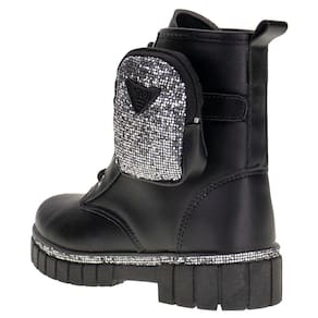 Bota Infantil Feminina Coturno Bag Nilqi é confeccionada em um conjunto de materiais de altíssima qualidade, forrado em têxtil e detalhes em glitter, acompanhada por uma bag acoplada na lateral do cano. Sua palmilha em EVA acomoda os pés, enquanto o solado é em borracha.