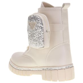 Bota Infantil Feminina Coturno Bag Nilqi é confeccionada em um conjunto de materiais de altíssima qualidade, forrado em têxtil e detalhes em glitter, acompanhada por uma bag acoplada na lateral do cano. Sua palmilha em EVA acomoda os pés, enquanto o solado é em borracha.