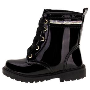A Bota Infantil Feminina Coturno Gracinha é confeccionado em material durável, forrado em têxtil, com detalhes delicados em strass. A palmilha em PU é confortável, enquanto o solado em borracha garante estabilidade, além de seu cano medir onze centímetro por vinte e seis de circunferência.