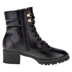 A Bota Infantil Feminina Coturno Molekinha é confeccionada em Napa Turim com acabamento em costura, fechamento por cadarço, forro interno em têxtil, palmilha em PU e solado em borracha. Esse modelo possui cano de catorze centímetros com vinte e nove de circunferência.