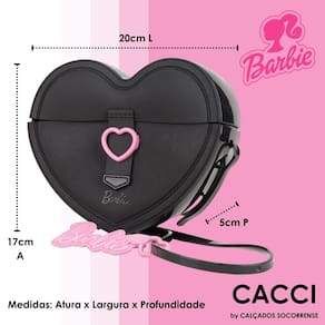 Fechamento estilo "baú" com fechamento prático em forma de coração, texturas variadas simulando sobreposições, e o icônico logo Barbie no chaveiro com mosquetão dão o toque final a este conjunto encantador.
