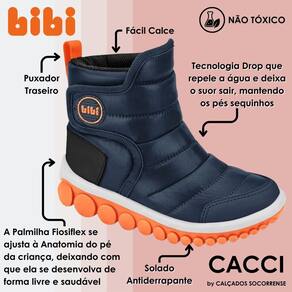 A exclusiva tecnologia da nova palmilha Fisioflex Dry da Bibi possui espuma de alta densidade, com capacidade de absorção e amortecimento do impacto durante a caminha, também conta com pipetas que geram a sensação de andar descalço através de estímulos sensoriais nos pezinhos, auxiliando no desenvolvimento natural e saudável da criança.