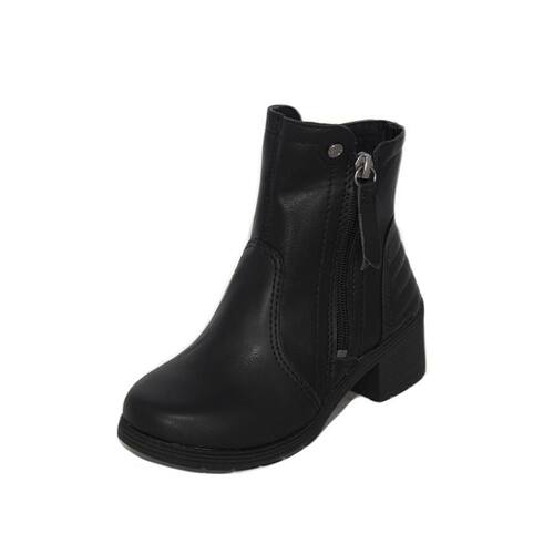 A Bota Pink Cats Infantil de Cano Curto Preta é uma excelente opção para o dia a dia das garotas. Com salto bloco de 5 cm e sola levemente tratorada, ela oferece conforto e estabilidade para as atividades cotidianas. O design monocolor traz um ar moderno e descolado, enquanto as costuras com volume discreto na região do calcanhar e zíper lateral externo agregam estilo e praticidade ao modelo.