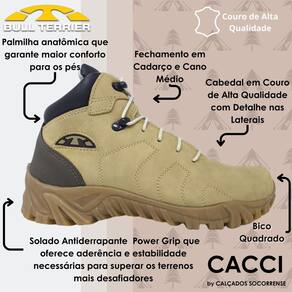 Cabedal em couro autêntico: Material resistente e durável que oferece excelente proteção para os pés, mesmo nos ambientes mais exigentes.