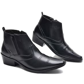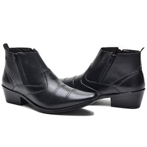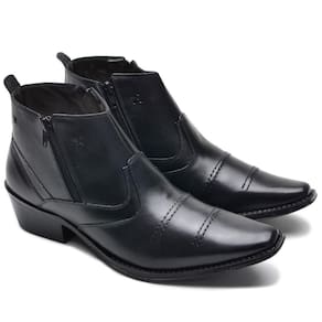 Bota Masculina Country Cano Curto Bico Fino Blaqueado Zíper - 39 - Preto