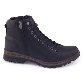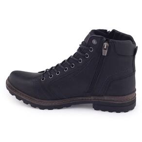 Para aqueles que amam uma aventura, este modelo é o ideal. Com seu cabedal confeccionado em couro, possui costuras aparentes em azul como detalhe decorativo, zíper nas duas laterais do calçado facilitando na hora do calce e um grande diferencial é ter duas opções de cadarço, um de material têxtil e outro em tira de couro. Seu solado é tratorado aumentando a segurança ao caminhar, com 3cm e sua palmilha é fixa em EVA.