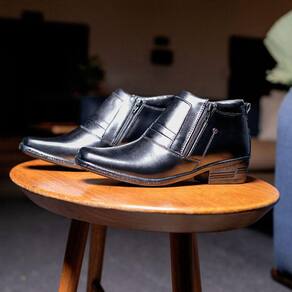 CABEDAL = Couro FECHAMENTO = Zíper nos Dois Lados do Pé SOLADO = Borracha (Possui Costura Na Sola) FORRAÇÃO = PVC com Espuma 5mm e Raspa de Couro no Calcanhar PALMILHA = PVC Acolchoada Almofadada ALTURA DO SALTO: Variação de cada número entre 4 a 5 cm. MEDIDAS DA CAIXA = 32X22X12 Centímetros