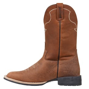 Uma Bota Western masculina na líder em qualidade Jácomo, fabricada em couro estilo Mustang na cor Marrom, possui cano alto com alças para facilitar o calce, bico quadrado, vira com costura dupla reforçada e solado totalmente de borracha. Por dentro, toda revestida em couro e com uma palmilha de alta qualidade, feita para você que quer um conforto maior no uso da bota em qualquer situação, adaptando ao pé do utilizador. Uma peça que não pode faltar no guarda roupa do cowboy ou cavaleiro, demonstrando sua personalidade por onde vai, seja na montaria ou no dia a dia!
