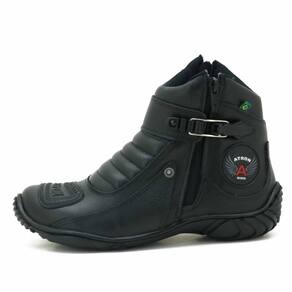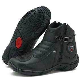 A bota ideal para quem vive a paixão por duas rodas, unindo design robusto e segurança. Confeccionada em couro resistente com partes acolchoadas, ela foi projetada para oferecer proteção e conforto. O solado antiderrapante em borracha é essencial para garantir aderência e estabilidade em diferentes condições. A qualidade de sua construção é reforçada pelo zíper lateral e pela fivela ajustável, que proporcionam um calce prático e um ajuste seguro, fazendo dela a parceira perfeita para a sua jornada.