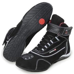 Criada para os apaixonados por velocidade e adrenalina, esta bota une design atual com tecnologia de proteção. Confeccionada com uma combinação de couro e materiais resistentes, ela possui costuras reforçadas e áreas estratégicas para maior segurança. O solado de borracha de baixo perfil foi projetado para oferecer aderência e sensibilidade ideais para a pilotagem. A qualidade de sua construção é notável no sistema de fechamento com cadarços e fitas autocolantes, que garante ajuste perfeito e durabilidade para suas aventuras