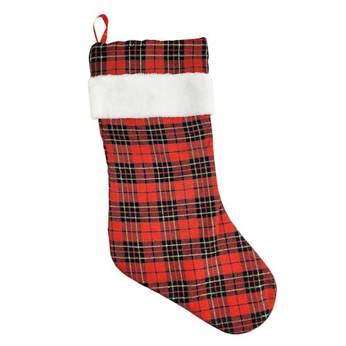 Bota Natalina Xadrez Vermelha E Preta 45X19Cm Natal
