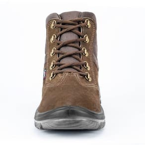 Bota com cardaço na cor café numero 38 da crival linha plus produzida em couro nobuck, solado constituído de duas camadas de poliuretano (PU) expandido bi-densidade, injetado diretamente no cabedal, possui característica antiderrapante e palmilha antimicrobiana, sistema de absorção de impacto. O modelo é ideal para trabalhos na área agrícola, sendo confortável e protegendo contra riscos de impacto, cortes, compressões e perfurações de natureza leve.
