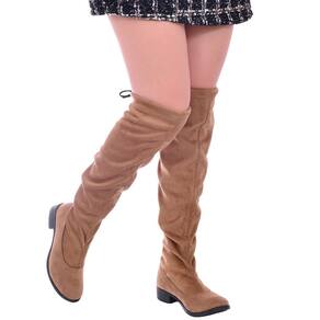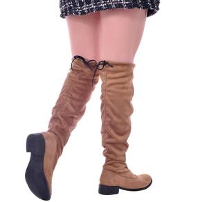 Bota Over Feminina The Knee Cano Longo Salto Baixo Moda - 36 - Mostarda