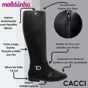 A Bota Molekinha Cano Alto Juvenil Menina Fivela 2181.104 apresenta cabedal em material sintético resistente, com detalhe de fivela para um toque de estilo. Seu bico é arredondado, oferecendo conforto aos pés. O fechamento é por zíper lateral, proporcionando praticidade no calce. Com construção sólida, possui altura do cano até o joelho. O salto é baixo 3,0 cm e robusto, tipo plano. A palmilha é macia e a calcanheira acolchoada para conforto extra. O forro interior é em material têxtil, oferecendo respirabilidade. O solado é de borracha, proporcionando aderência. Com estilo juvenil e design moderno, é ideal para complementar looks casuais ou despojados com um toque de moda.
