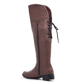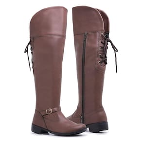 Bota Over Moda Chic Com Amarração e Fecho de Zíper Bico Redondo E Salto Grosso - 34 - Marrom