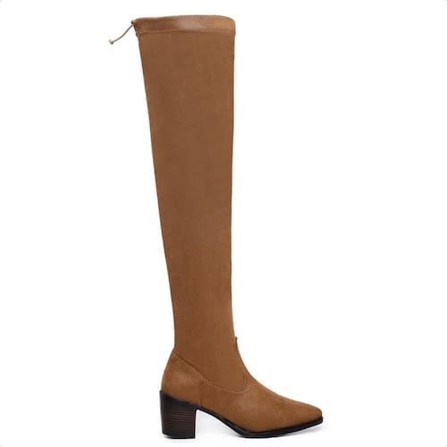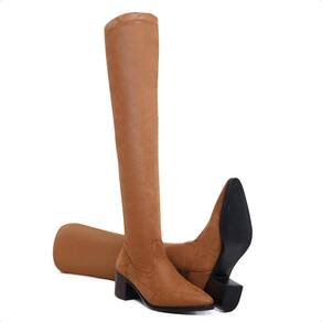 Bota Over The Knee Bico Fino Salto Baixo Elástico Moderna - 35 - Marrom