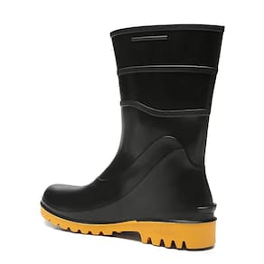 Características Adicionais: Possui cano curto com espessura de 2mm e estrias laterais que facilitam o calce e estria no calcanhar para descalce. Confeccionada em policloreto de vinila (PVC). Com adição de massa nitilica proporcionando melhor resistência a abrasão, ressecamento e trincas. Sem forro e sem biqueira.