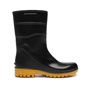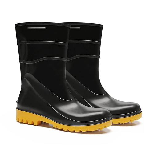 Características Adicionais: Possui cano curto com espessura de 2mm e estrias laterais que facilitam o calce e estria no calcanhar para descalce. Confeccionada em policloreto de vinila (PVC). Com adição de massa nitilica proporcionando melhor resistência a abrasão, ressecamento e trincas. Sem forro e sem biqueira.