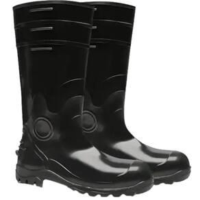 Especificações Técnicas - Material: Confeccionada em policloreto de vinila (PVC) com adição de massa nitrílica. - Design: Modelo de cano longo com espessura de 2 mm e estrias laterais para facilitar o calce e descalce, proporcionando ajuste seguro. - Cor: Preta - Forro Interno: Forração em poliéster que absorve o suor e mantém os pés secos. - Biqueira: Biqueira em aço carbono, oferecendo proteção contra impactos. - Palmilha: Palmilha de aço resistente à perfuração, garantindo segurança adicional. - Solado: Solado de PVC reforçado com massa nitrílica, desenvolvido com ranhuras especiais que proporcionam excelente aderência em pisos escorregadios.