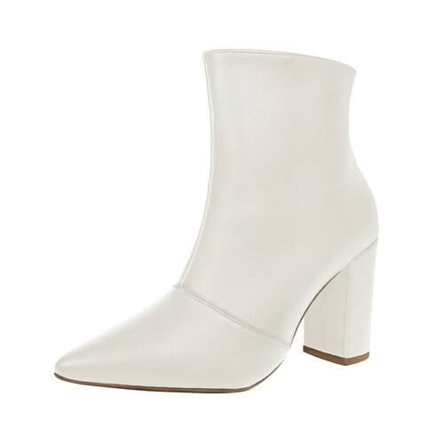 Bota Salto Alto Grosso Cano Curto Bico Fino Luiza Sobreira Off White Mod. 2230 - 38 - Branco