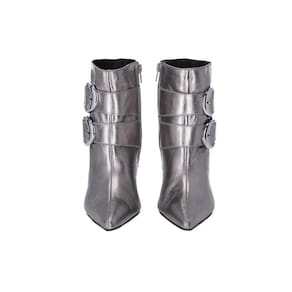 Icônica! Essa bota metalizada com detalhe de duas fivelas é para quem quer sair de casa e deixar sua marca. O couro metalizado dá um show de glamour. Se você gosta de transformar seus looks numa super produção de red carpet, essa bota é must have. O salto em couro e o bico fino entregam o efeito chique a qualquer estilo de roupa que voocê escolher, da mais simples à mais fashionista.