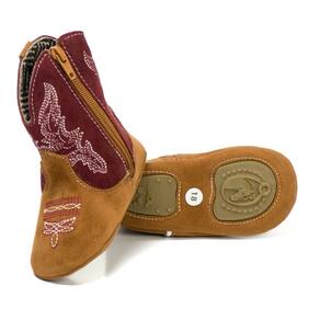 Bota Texana Bebê Bordô Infantil Confortável De Couro Primeiros Passos Kapell - 19 - Vermelho