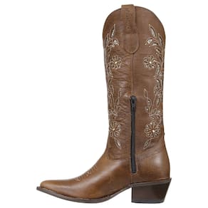 Uma Bota Texana feminina na líder em qualidade Jácomo, fabricada em couro de alta qualidade na cor Marrom, possui cano alto com costuras em alto relevo e alças para facilitar o calce, bico fino com florão costurado, vira com costura reforçada e solado em couro. Por dentro, toda revestida em couro e com um grande diferencial, uma palmilha de alta qualidade feita para você que quer um conforto maior no uso da bota em qualquer situação. Uma peça que não pode faltar no guarda roupa da cowgirl, demonstrando sua personalidade por onde vai, seja na montaria ou no dia a dia!