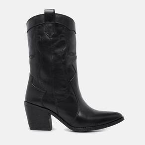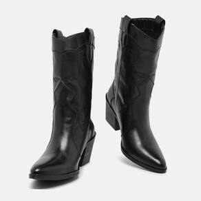 Bota Texana Feminina Couro Country Detalhes Confortável - 36 - Preto