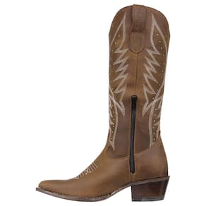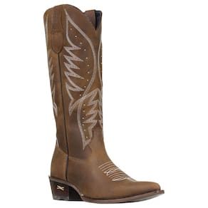 Uma Bota Texana feminina na líder em qualidade Jácomo, fabricada em couro de alta qualidade na cor Marrom, possui cano alto com costuras, rebites em alto relevo e alças para facilitar o calce, bico fino, vira com costura reforçada e solado em couro. Por dentro, toda revestida em couro e com um grande diferencial, uma palmilha de alta qualidade feita para você que quer um conforto maior no uso da bota em qualquer situação. Uma peça que não pode faltar no guarda roupa da cowgirl, demonstrando sua personalidade por onde vai, seja na montaria ou no dia a dia!