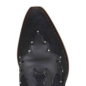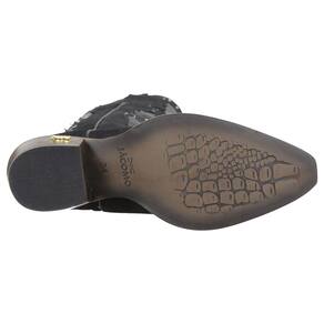 Uma Bota Texana feminina na líder em qualidade Jácomo, fabricada em couro estilo camurça de alta qualidade na cor preta, possui cano alto com costuras e rebites em alto relevo com alças para facilitar o calce, bico fino, vira com costura reforçada e solado em couro. Por dentro, toda revestida em couro e com um grande diferencial, uma palmilha de alta qualidade feita para você que quer um conforto maior no uso da bota em qualquer situação. Uma peça que não pode faltar no guarda roupa da cowgirl, demonstrando sua personalidade por onde vai, seja na montaria ou no dia a dia!