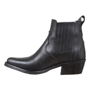 Uma Bota Masculina modelo Texana da nossa marca Cow Way, fabricada em couro de alta qualidade pintado na cor Preto, possui cano curto com elásticos laterais para facilitar o calce, bico fino liso, costuras laterais reforçadas e solado de borracha estilo carrapeta, assim levando maior conforto em longas distancias. Para você que precisa de um calçado tanto para a cidade quanto para o campo, esse pode confiar!