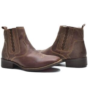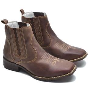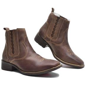 Bota Texana Masculina Couro Cano Curto Elástico Bordada - 42 - Marrom