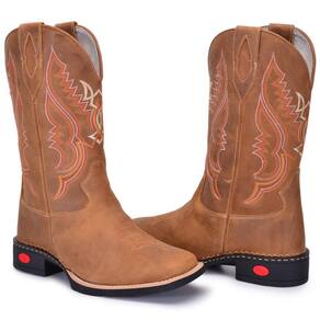 Bota Texana Masculina Couro Country Bordada Cano Médio - 42 - Marrom