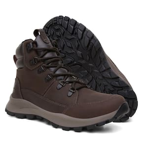 Bota Masculina Marrom Adventure Trekking Solado Tratorado Casual para Trilhas, Caminhadas, Passeios feito em Couro na Cor Marrom Reforçado Moderno, Resistente, Elegante, Confortável - Modelo Edição Limitada Novo Lançamento 2023 Estiloso com Fechamento em Cadarços