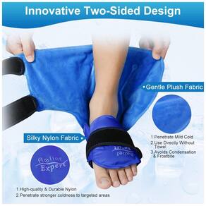 Tecido duplo inovador e prático de usar A bolsa de gelo para pés e tornozelos Relief Expert é projetada exclusivamente como tecido de pelúcia macio e felpudo, penetrando no frio suave e usando diretamente sem uma toalha como proteção. O lado macio isola a condensação e evita queimaduras pelo frio. O tecido duplo varia diferentes níveis de frio. Inicie a terapia fria com tecido macio de pelúcia por 10 15 minutos, depois vire para o lado de náilon se o lado macio de pelúcia não estiver frio o suficiente. O lado de náilon penetra frio intenso no pé machucado. Cobertura total para tornozelo e prevenção de vazamento de gel A área de aplicação eficaz para terapia com compressas frias é universalmente adequada para a maioria das pessoas e alivia a dor direcionada para pés e tornozelos. Os dois lados da bolsa de gelo são todos de alta qualidade e duráveis, bem feitos e com borda de vedação dupla, selando a borda duas vezes, de modo que a bolsa de gelo para tornozelo e pé evita vazamento e quebra do gel. Reutilizável e durável. Ótimo para atletas e para quem fica em pé o dia todo. Direcionado para áreas específicas do tornozelo e do pé O envoltório de gelo no calcanhar é flexível para aplicar terapia fria quando sofre de torção no tornozelo, lesões no tendão de Aquiles e artrite no pé. Direcionado para tornozelo lesionado, calcanhar, parte de trás ou sola do pé, este pacote de 2 bolsas de gelo para tornozelo pode ser como um par de meias de quimioterapia para neuropatia quimioterápica. Mantenha a frieza flexível e duradoura O envoltório de gelo no tornozelo é preenchido com 30 mais gel congelável, com ponto de congelamento mais baixo 25 graus Celsius permite que a bolsa de gelo se mantenha flexível e permaneça fria por mais tempo. A bolsa de gelo reutilizável para tornozelo ainda se mantém flexível quando congelada, que é facilmente ajustada para caber na maioria dos tornozelos com as tiras elásticas de neoprene, a bolsa de gelo para o pé inteiro contorna o tornozelo e o pé confortavelmente com compressão, penetrando profundamente o frio no pé machucado e aliviando rapidamente o tornozelo dolorido . Portátil para usar Ao resfriar a bolsa fria do tornozelo do pé no freezer, coloque a na bolsa durável fornecida para proteger a bolsa de gelo de manchas e odores no freezer, portátil para ser retirada para atividades externas.