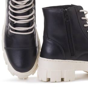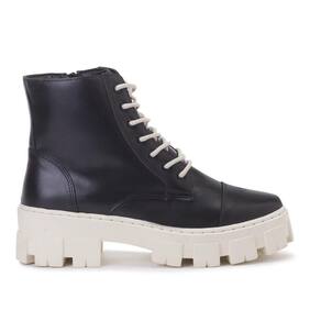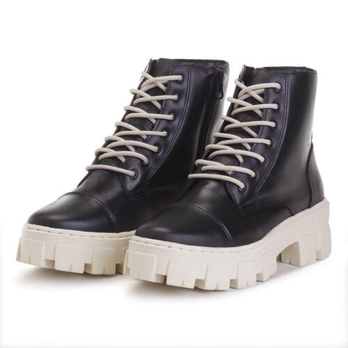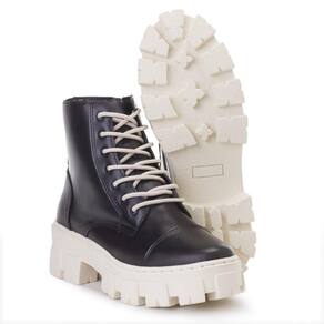 Bota Tratorada Couro Coturno Inverno Feminino Solado Borracha Palmilha Conforto - 33 - Preto