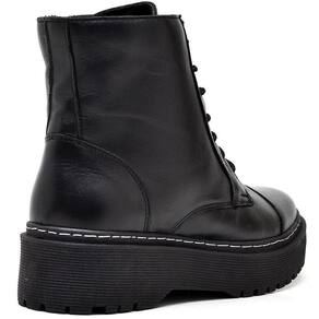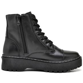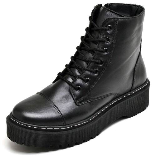 Bota Tratorada Couro Feminina Com Cadarço Super Macia e Leve Moderna Sola Borracha - 35 - Preto