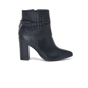 A Bota Via Marte Salto Alto Feminina Cano Baixo Miçangas Preto vem com salto alto bloco e bico fino. O modelo de cano curto, traz uma malha de enfeite no cano e zíper no lado interno para auxiliar na hora de calçar proporcionando conforto, elegância e modernidade ao look.