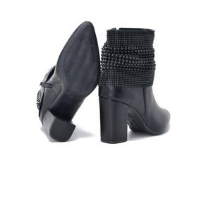 Bota Via Marte Salto Alto Feminina Cano Baixo Miçangas Preto 332188