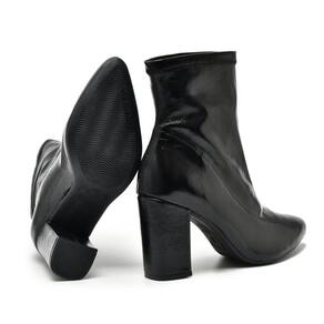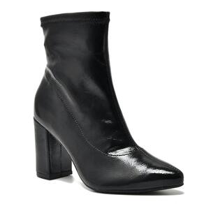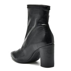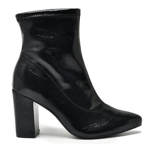 Marca: Via Marte Altura do salto: 9cm aproximadamente Altura do cano: 15cm aproximadamente Material externo: Stretch/Sintético/Verniz Material interno: Têxtil Material da palmilha: PU (Poliuretano) Material da sola: Emborrachado Acabamento: Colado/Costurado Ocasião de uso: Casual / Dia a Dia Modelo: 021-004-01 Referência: 02100401 Detalhes: Strech / Elastano / Salto Bloco.