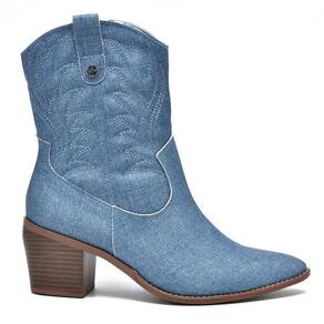 Nova trends - Bota Western em tecido jeans! Já de olho em tudo que é tendência, podemos confirmar que o jeans é novo hit do momento. Sucesso dentro e fora das passarelas, o look all jeans feminino roubou a cena ao redor de todo mundo. Nas roupas e nos acessórios, o clássico jeans vira item de moda e desejo, prometendo dar um up nas suas produções e finalizando com os calçados em jeans must-have do momento!